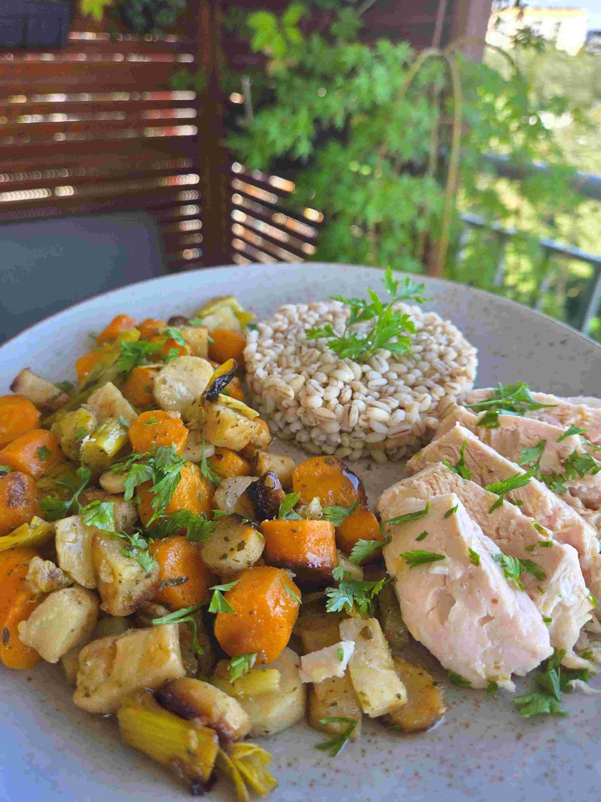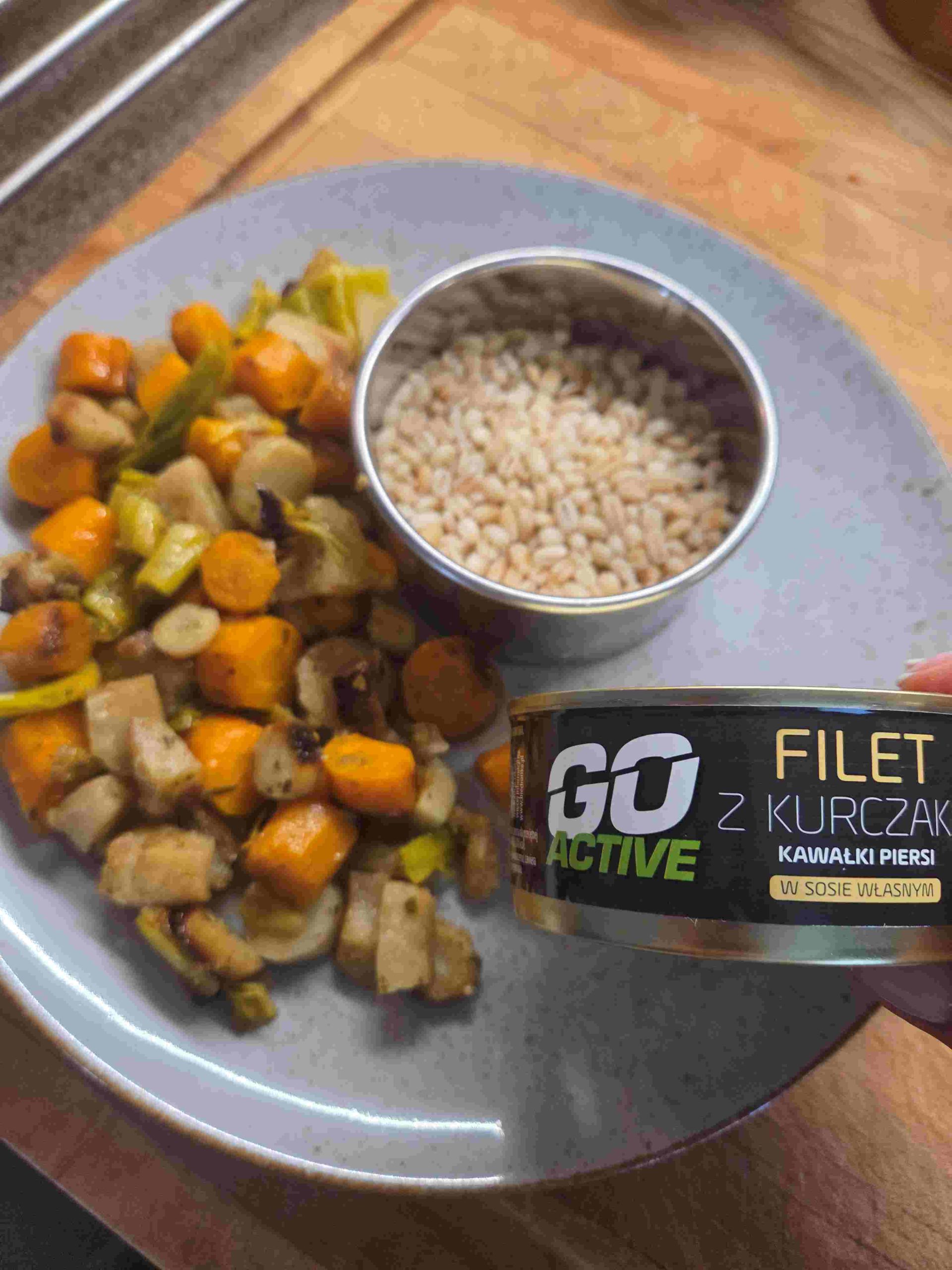 Dzisiaj proponuję obiad całoroczny: warzywa korzenne i kasza to danie smakuje o każdej porze roku. Sporą ilość białka dostarcza kurczak z puszki. Proste danie, szybkie do przygotowania i bardzo smaczne.