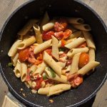 Na koniec groszek mrożony i teraz trzeba zmniejszyć ogień i przykryć naczynie. Zostawiacie to na ok 6-7 minut. Krewetki nie mogą być przegrzane bo są wtedy twarde i gumowate.