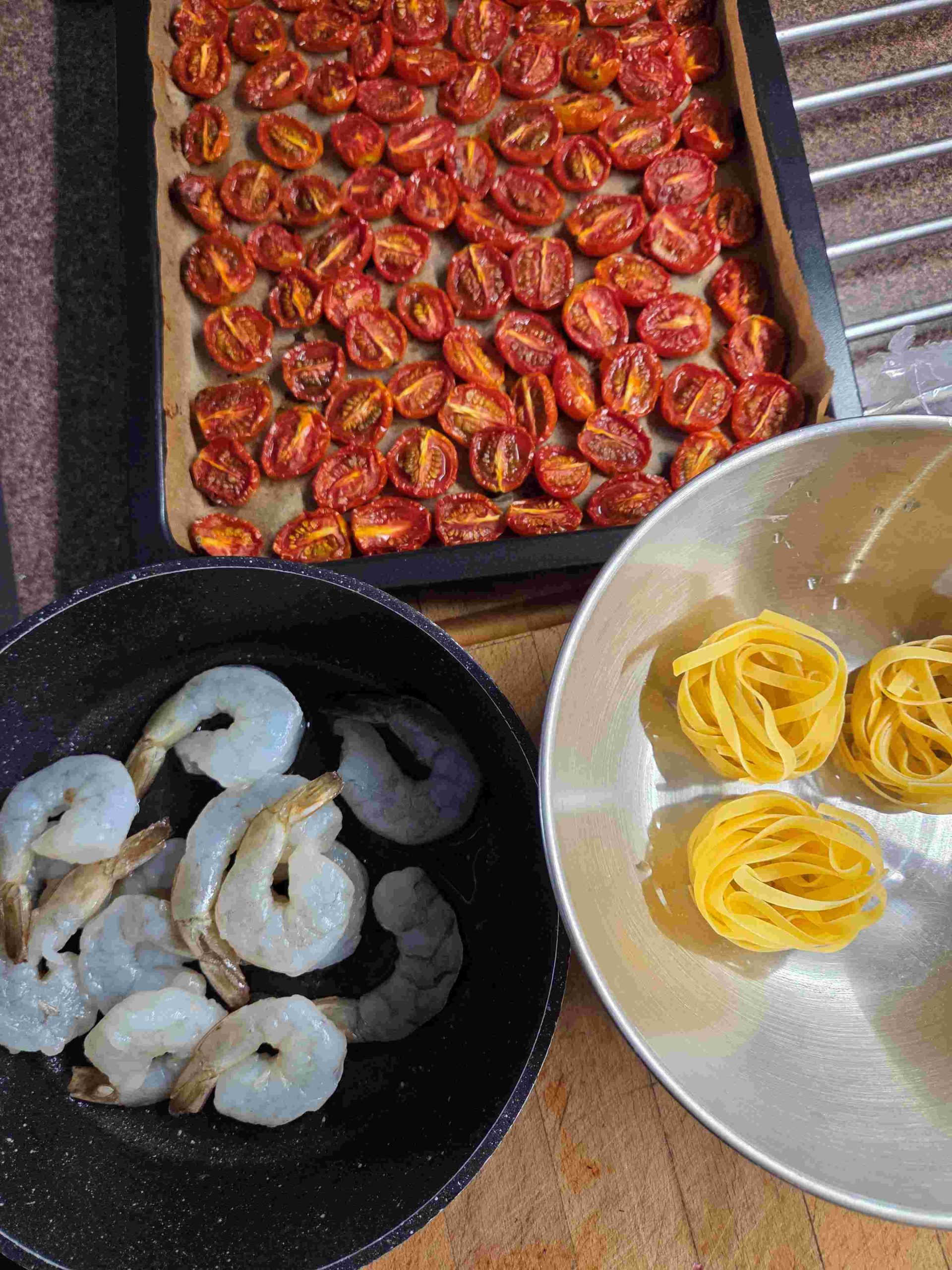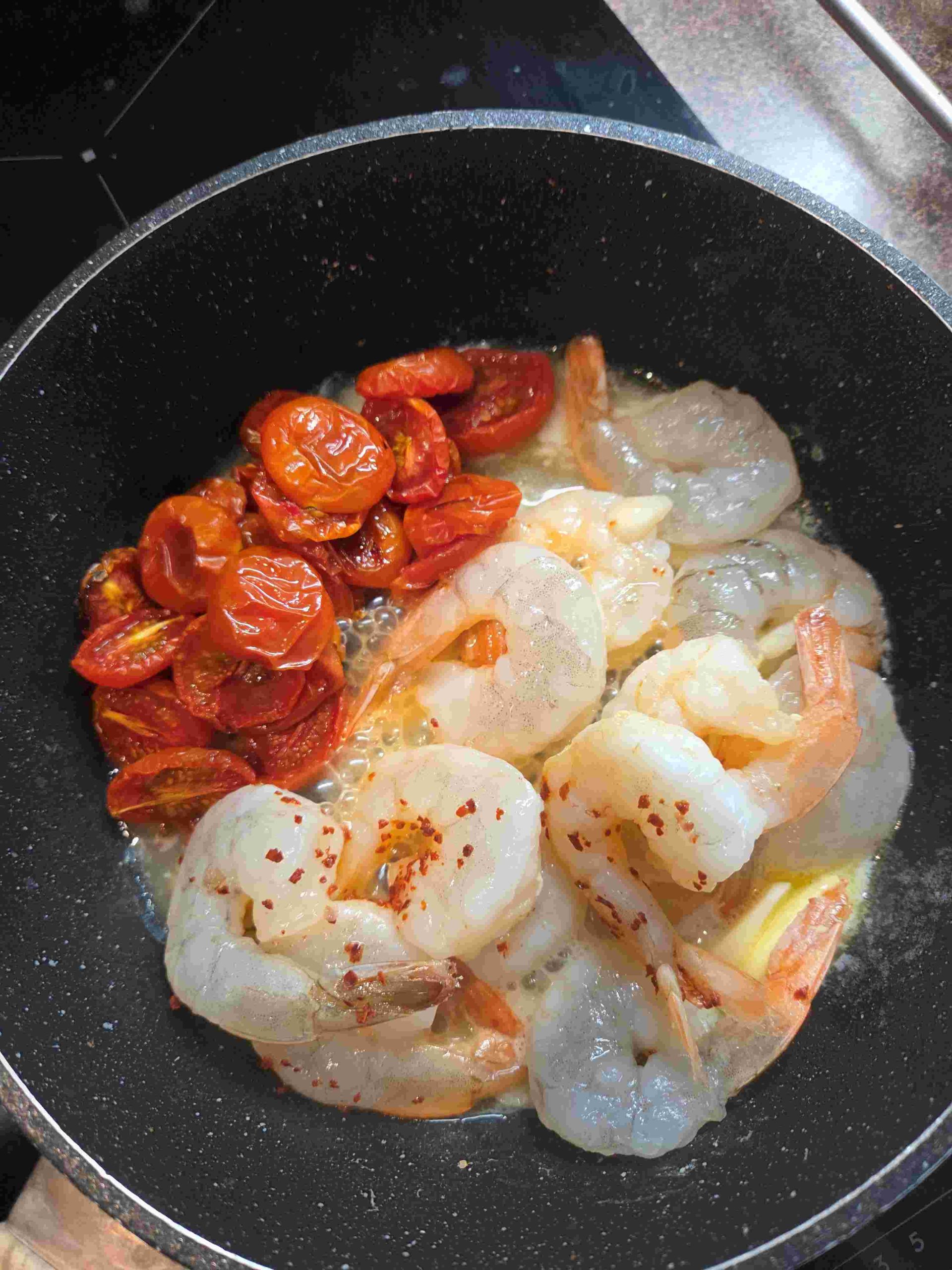 Do krewetek dorzuciłam pomidorki uprzednio upieczone...